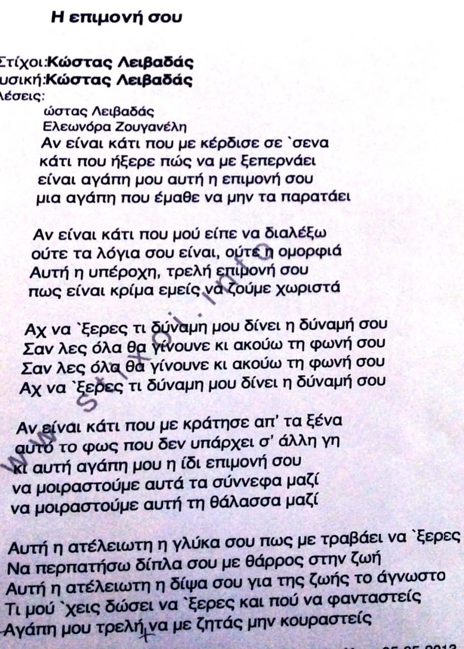 ΣΤΙΧΟΙ ΤΡΑΓΟΥΔΙΩΝ